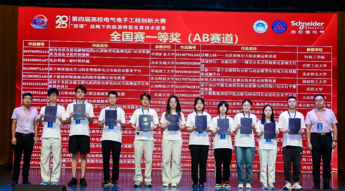 副院长孙伟教授和李飞副教授指导的作品——《慧储智行,双碳先锋 城市分布式智储换电先行者》(团队成员:朱锦峰、王卓凡、姚已轩、黄乐然、肖明亮)凭借卓越的表现荣获一等奖;副院长黄海宏教授和邓凡李老师指导的作品——《DC/DC双向功率变换器设计》(团队成员:尹军权、吴瑞峰、顾文宇、翟王健、陶旭晖、刘玉田)、张宇娇教授指导的作品——《新型硅钢槽盒治理三相电抗器漏磁引起的接地电缆发热故障研究》(团队成员:黄嘉奕、张熠、崔皓、孟文军)、杨晓东副教授指导的作品——《基于软件定义技术的高比例新能源配电网适变运行系统》(团队成员:席嘉、秦启越、杜耀宁、杨玉岩、李任静)、施永副教授指导的作品——《知氢达理——车用燃料电池健康状态监测系统》(团队成员:黄程、刘文斐、卢康健)四支队伍荣获二等奖。
