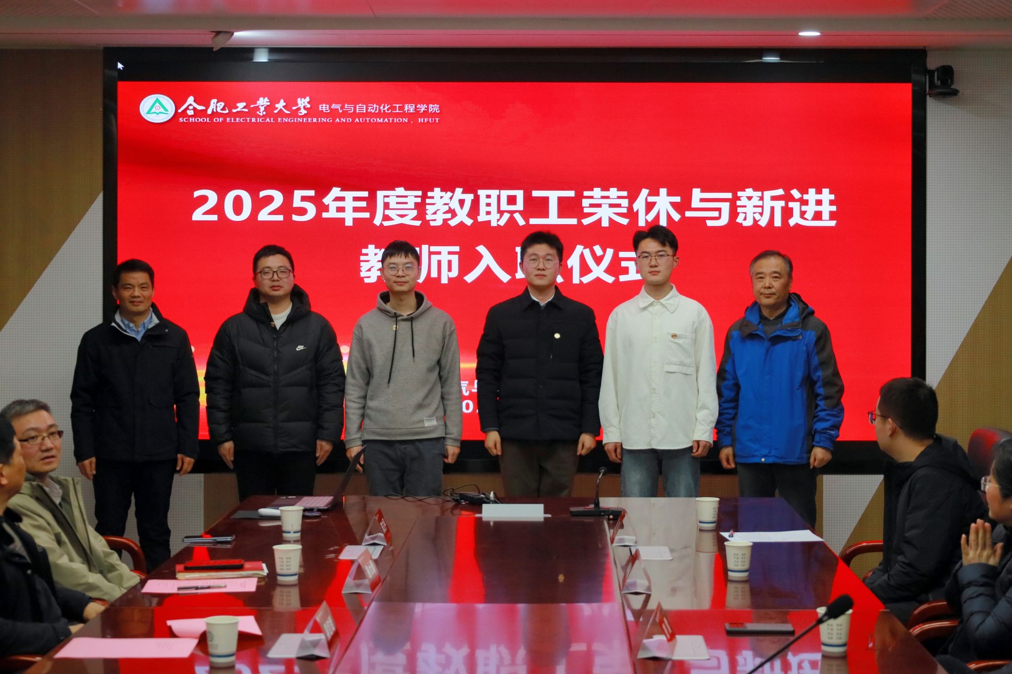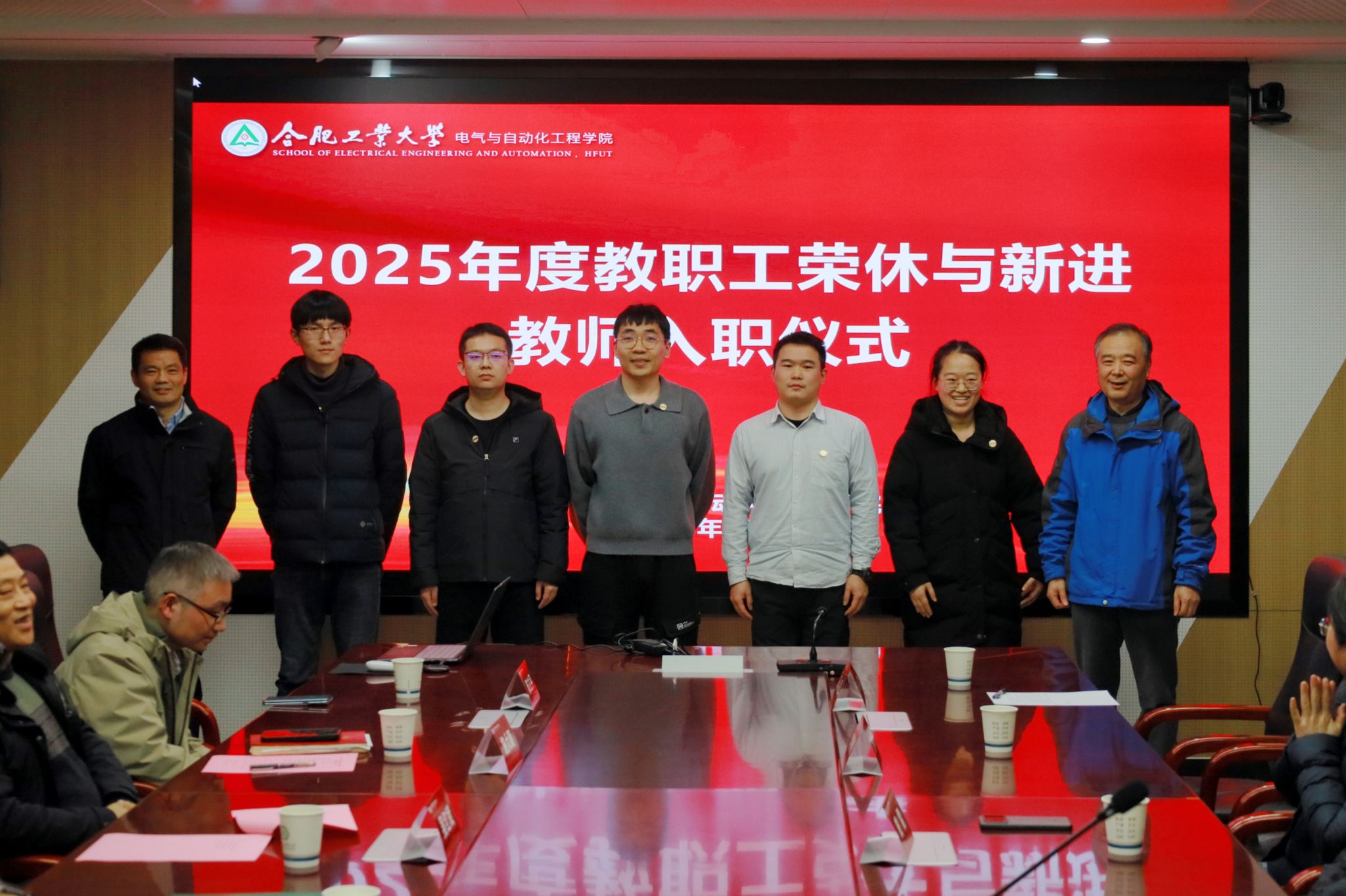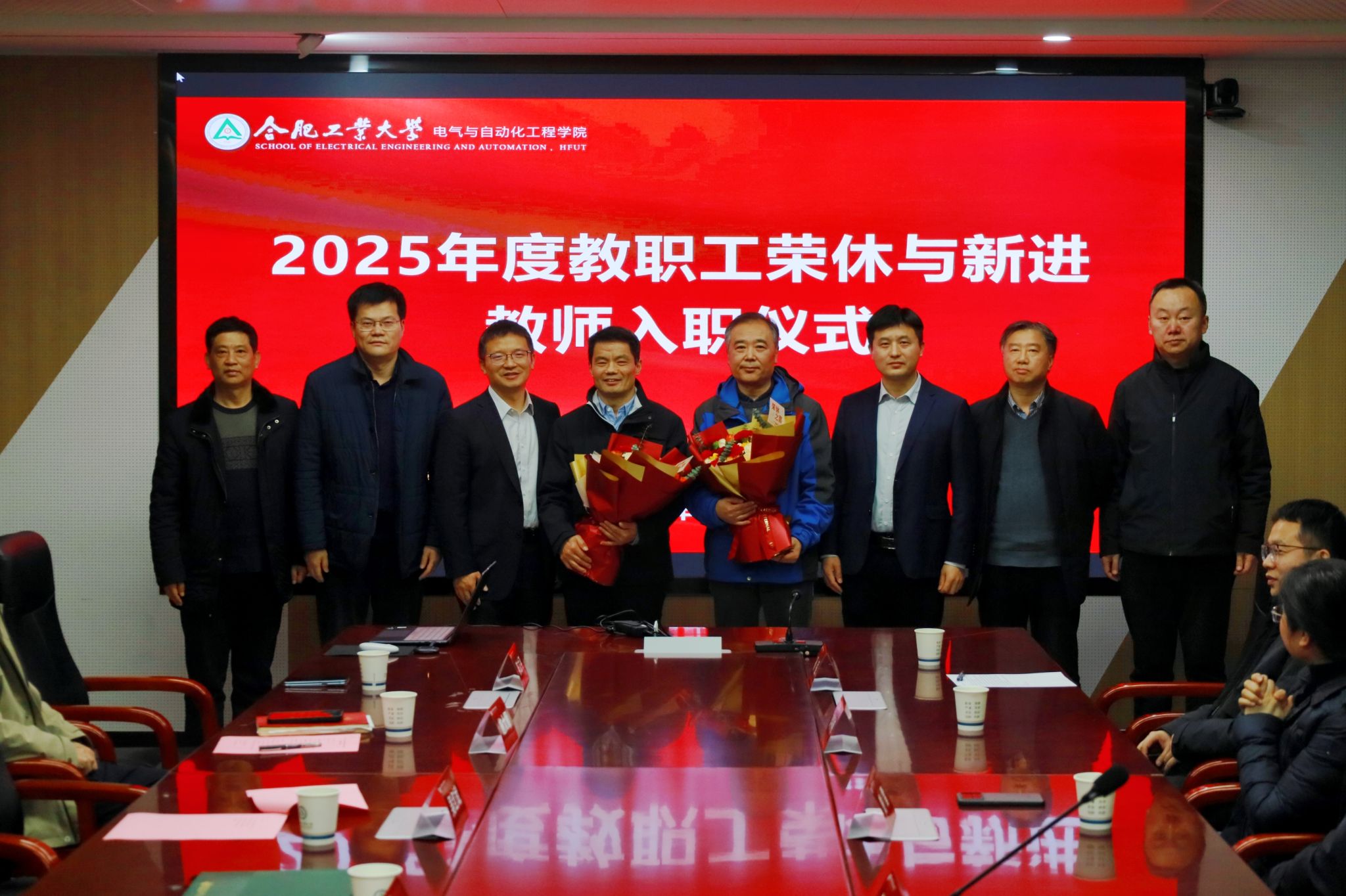 在逸夫楼1009会议室举行2025年度教职工荣休暨新教职工入职仪式。学院领导班子、各系(中心)负责人、2025年退休职工及新入职青年教师出席活动。